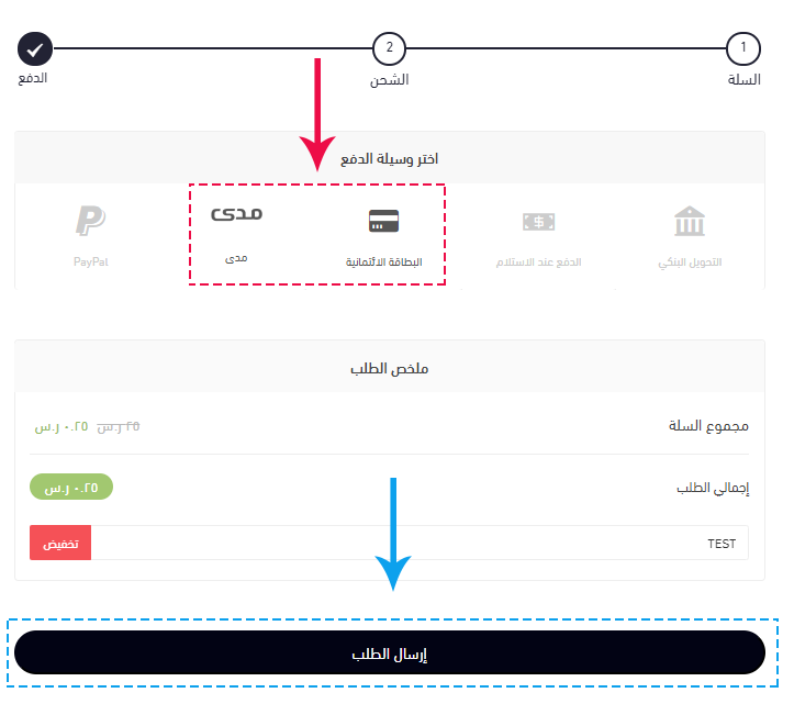 - اضغط على زر إرسال الطلب ليتم تحويلك للخطوة القادمة و الأخيرة الخاصة في بوابة الدفع.